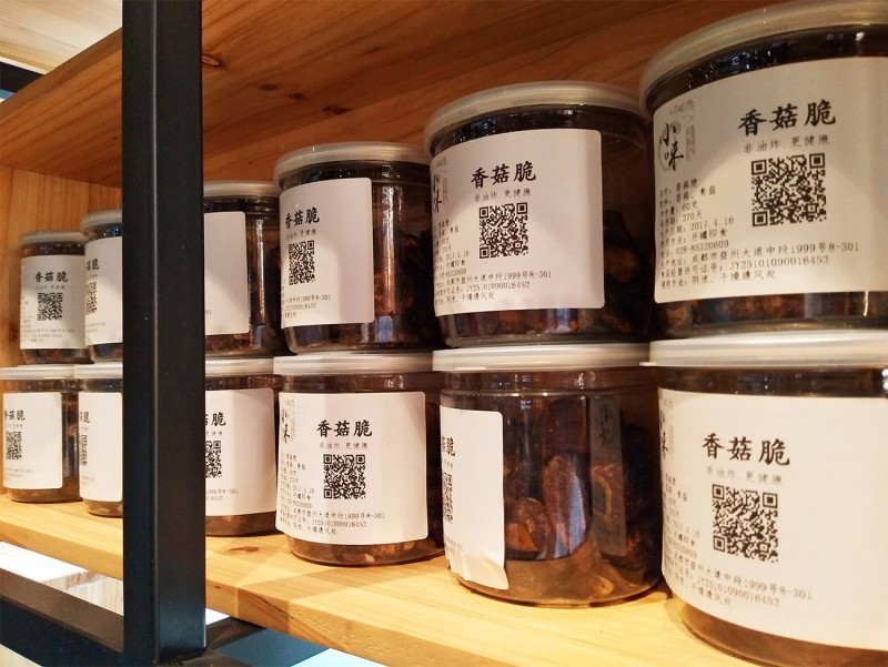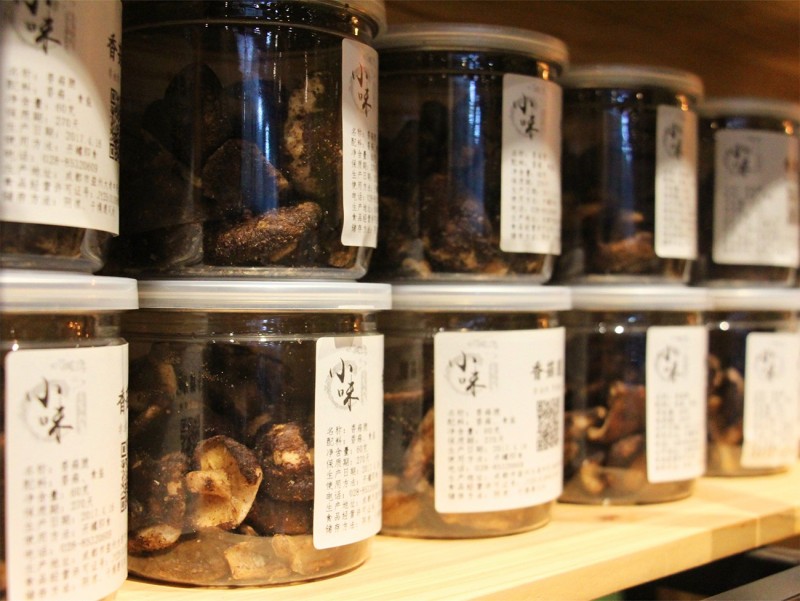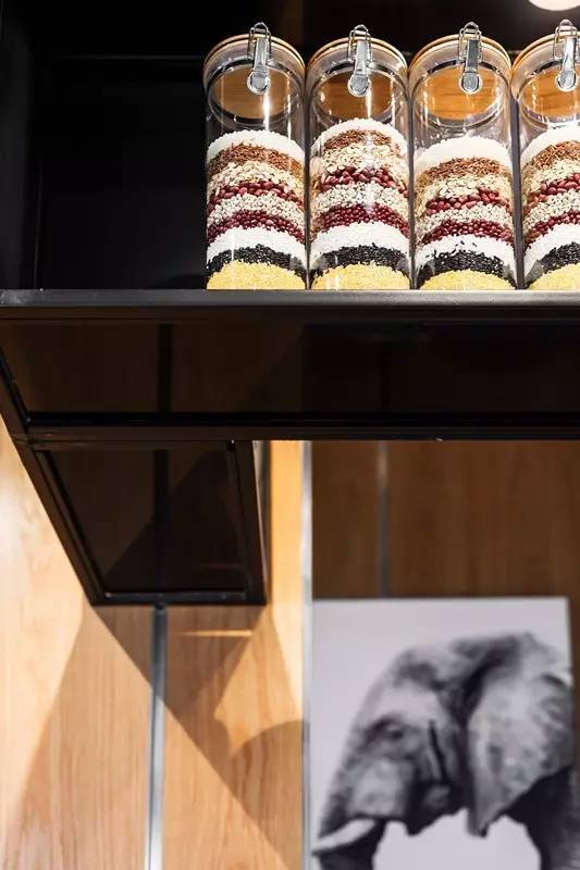 在调味区柜子上方放置了一些用完的酱油瓶和保宁醋空瓶。城城发现调料所使用的酱油、醋、藤椒油......全都是无添加剂的,所以大家可以放心食用。 2它是餐厅,却售卖生活方式