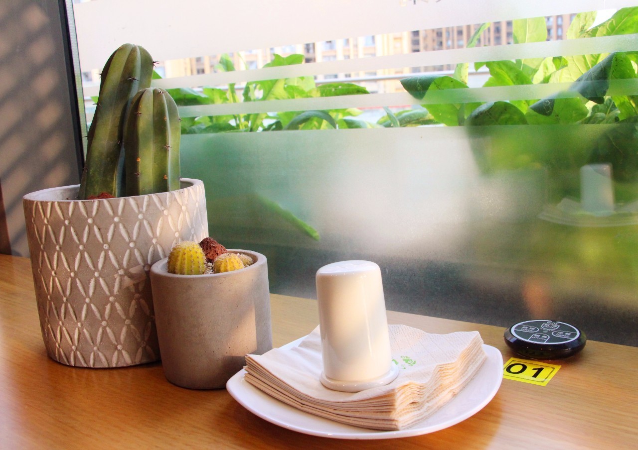 小味隐现在绿意下,步履匆匆地迈进去,心都会不自觉的跟着平静下来。身处银泰城这个喧闹的商业地,如此环境让人不觉赏心悦目,随意放松。