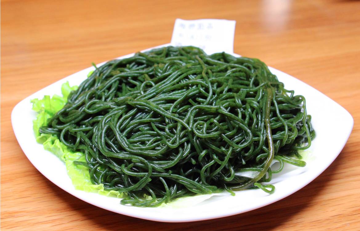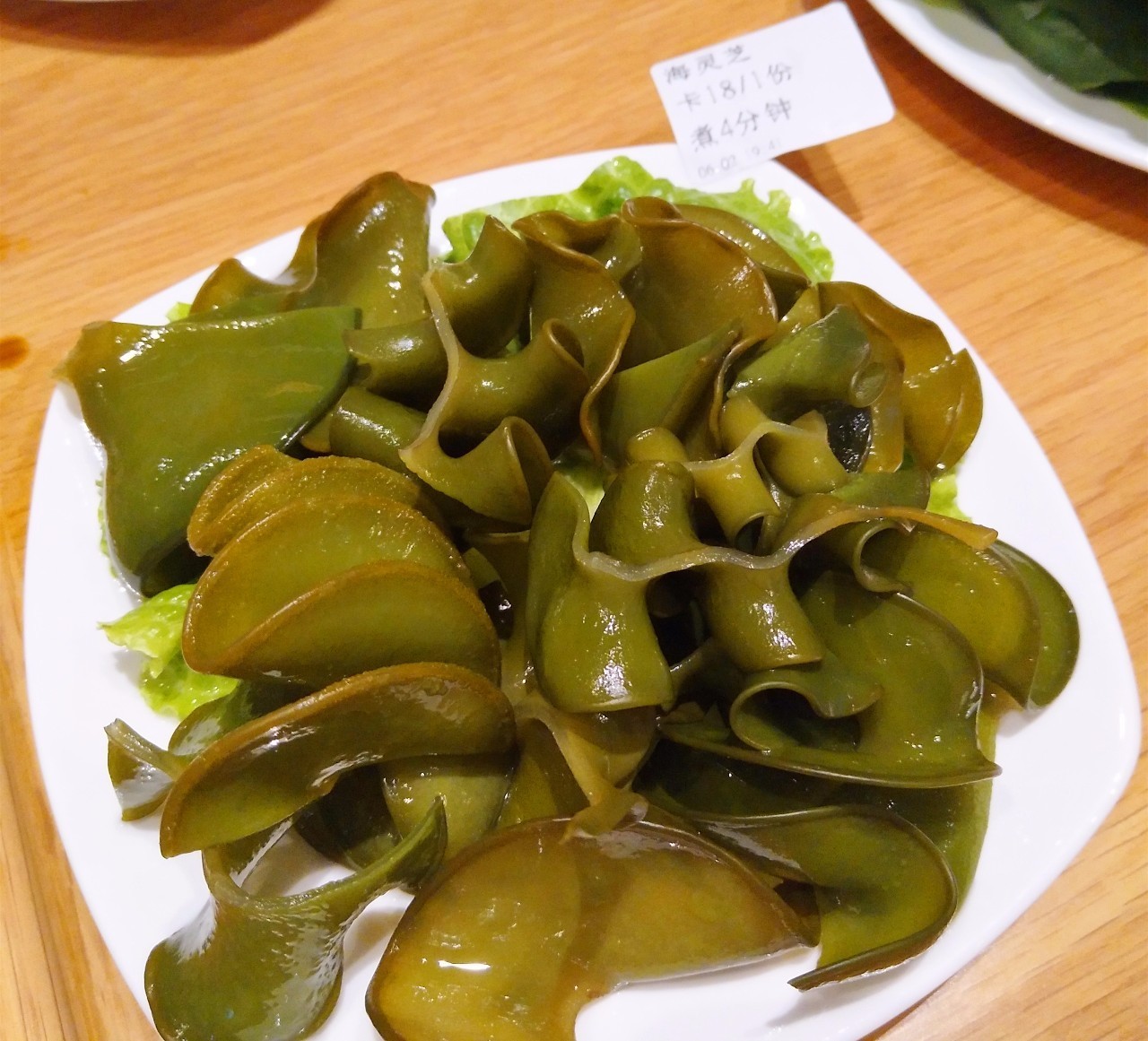 海带是一种营养价值很高的蔬菜,同时还具有抗衰老、瘦身的功效。翠绿柔软的海带,堆砌在白瓷盘里,单单看着就能想象那入口的柔滑。翠色丝绸滚入汤锅中,绵柔滑爽,在蘸料里滚一滚,轻轻咬一口,麻辣鲜甜就在嘴里喉间化开,蔓延·· 海灵芝