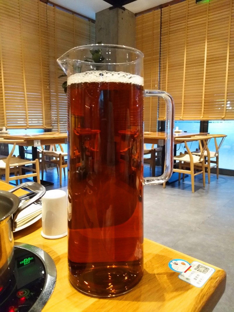 (汤很清澈,不同于荤食火锅总浮着一层嘌呤物) 白茶包在锅中翻煮,混合了红枣、枸杞,番茄的自然之味,茶意浓,汤越浓。涮出来的菜配以他家的特制酱汁,得到的自然是至上的美味,尽显素食的本质。