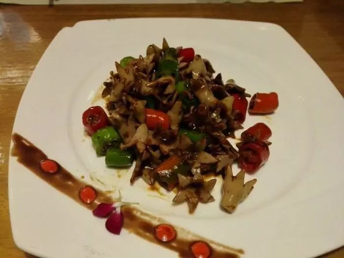 在振兴路钟表市场的斜对面,一家很素雅的素菜馆,环境清幽,菜式也很有创意的,摆盘很用心,很多朋友可能会把某些素菜当荤菜吃,具体是?那就自己感受了,哈哈。石榴花是这里的特色,酱料爆炒,搭配红绿辣椒圈,吃起来有点脆,有点辣,口感丰富,酱料越多,吃起来越爽。
