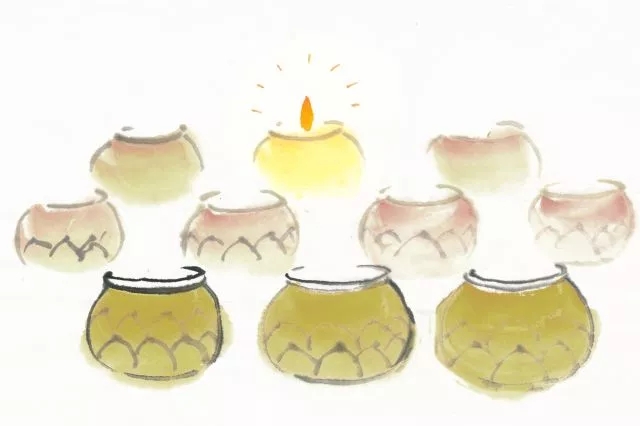 一夜过去,其他灯都已熄灭,唯独难陀的这盏灯还在燃烧,灯芯丝毫未减,像新点燃的一样。