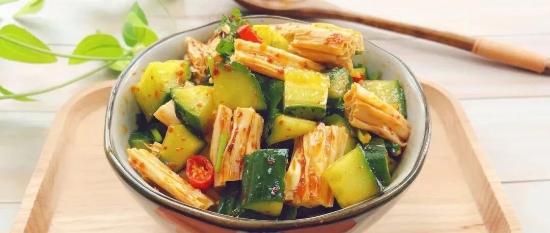 4.将腐竹,黄瓜丁,香菜放在大碗中。加入适量的白糖、盐。