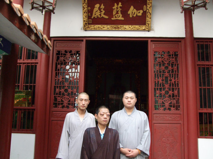 09年佛欢喜日前夕,云门佛学院界定法师一行在湖南益阳白鹿寺参加水陆法会,遇见照片中的这位居士(居中者),并拍下了这张照片。