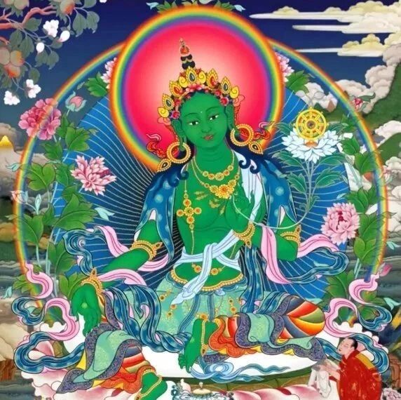 我们讲了对第一尊度母因缘的赞颂,接下来,我们讲赞颂度母的身相。其实度母很早以前就已经成佛,所以说度母的身相有法身和报身。我们先来学习度母的报身相,分为寂静相和忿怒相两种。