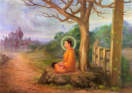 有一天,佛陀独自走到迦帝聚落和堕鸠罗聚落之间的大树下,席地静坐。