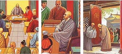 编者按:这则故事摘取自《晋书》,主人公鸠摩罗什(公元344 ~ 413 年),简称罗什。其父名鸠摩罗炎,母名耆婆,属父母名字的合称,汉语的意思为“童寿”。东晋时后秦高僧,著名的佛经翻译家。后秦弘始三年(401)入长安,至十一年(409)与弟子译成《大品般若经》、《法华经》、《维摩诘经》、《阿弥陀经》、《金刚经》等经和《中论》、《百论》、《十二门论》、《大智度论》、《成实论》等论,系统介绍龙树中观学派的学说。译经总数《出三藏记集》作35部294卷,《开元释教录》作74部384卷。所译经论影响很大,其中“三论”(《中论》、《十二门论》、《百论》)为三论宗主要依据;《成实论》为成实学派主要依据;《法华经》为天台宗主要依据;《阿弥陀经》为净土宗所依“三经”之一。著名弟子有道生、僧肇、道融、僧叡,人称“什门四圣”。