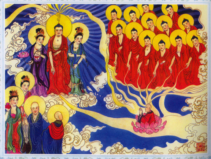 所以这个念佛一法,他的信心是需要这样的一个悟性的。是要对阿弥陀佛的那种不可思议的大悲愿力的决定的相信。我们都生活在阿弥陀佛的心里,阿弥陀佛用他的大悲愿海把我们托起来,我们凡夫众生的每一个行为阿弥陀佛都看的到,我们的每一句话,阿弥陀佛都听的到,我们每一个念头,阿弥陀佛都有他心通都知道。所以这个感应,虽然很深奥,虽然不可理解,但是他确实跟我们非常亲切的,亲切到什么地步呢?他就在我们的念头里面,阿弥陀佛慈悲的愿力在我们凡夫众生的每一个念头里面,所以我们的一切,阿弥陀佛在他的五眼圆明的这种状态当中,了了知道。就象《金刚经》里说的,一切众生举心动念,如来悉知悉见。既然弥陀对我们的举心动念都悉知悉见,而且我们每个众生都是阿弥陀佛的如同独生子女,所以他对我们的救度,这种稳妥性、这种不可思议,我们要有信心。不要老是站在我们自己的这个角度,去考虑很多事情,凡夫众生的知见都是错误的。那么,换一个角度,以佛的果地上的智慧、力量、威神、神通,来反观救度众生的这种情况,它是很容易的。所以往生一法他确实是容易往生。就象永明延寿大师所说万修万人去。