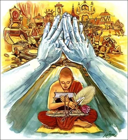 佛陀说:“比丘们!智者不会为了追求自己或别人的利益,而造作恶业以获取财富与成功。相反的,智者只知理解、奉行佛法而自行从轮回中解脱出来。人只能自己努力,解脱生死轮回, 而无法依赖别人。”