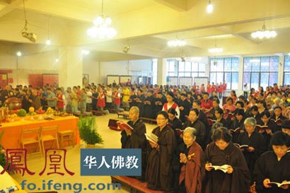 第四点:要防止散乱和昏沉。我们都知道,散乱和昏沉是我们念佛的两大障碍。如果能够做到既不散乱又不昏沉,那么我们念佛功夫就容易成片。成片以后,就容易做到一心不乱。怎样防止散乱?必须至诚恳切地念,必须按“心念耳闻”的方法去念。必须做到念一个字、听一个字,念一句、听一句:心中念得清清楚楚,耳里听得明明白白。这样念,杂念就无从产生,保证心不会散乱。如果听不清楚,说明产生了一些杂念,就有一些散乱。如果完全听不见,就说明杂念占了上风,我们的心已经跑得很远,大家可以试验。还有,在殿堂内,眼睛不要东张西望,目光应该自然下垂,只看到身前三尺以内,一心念佛,不管旁人,不要到处张望。如果东张西望,必然引起妄想。口里虽然在念佛,心已经跑远了;人虽然在殿堂上,心已经不在殿堂内了。这样念佛,效果不大;这样念佛,得不到受用。再说怎样防止昏沉?高声念佛,是防止昏沉的有效办法。但是我们坐着默念的时候,容易发生昏沉,怎么办呢?这与坐的姿势很有关系。我们身体要端正,腰要挺直。不是挺胸,而是腰,腰部要打直,要坐得舒适。小腹部要放松,头部不要上望,也不要低垂。昏沉来了,必然头部低垂或者东倒西歪的。出现这种现象的时候,自己应该把精神振作一下,把眼睛睁一下,把腰杆直一下,这样可以驱散昏沉的现象。假如昏沉很严重,这些方法没有效果的时候,可以站起来拜佛,这样昏沉自然就解决了。这是第四点。