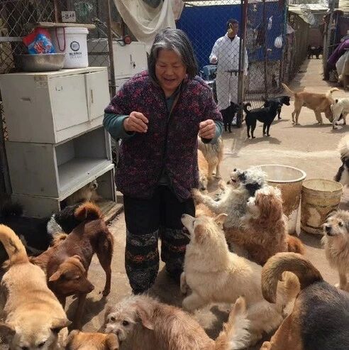 周奶奶收养流浪猫狗,