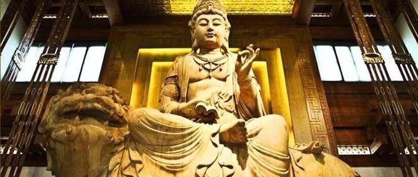 文殊菩萨,佛教四大菩萨之一,与般若经典关系甚深,故称为大智文殊师利菩萨。文殊菩萨为七佛之师,诸佛之母,众菩萨之首,乃释迦牟尼佛的左胁侍,他和释迦牟尼、普贤菩萨合称为“华严三圣”。