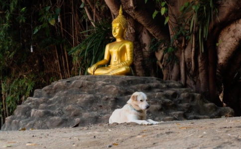 我住在乌敏岛时,有一只狗跑到我那里去;而在戒律中出家人是不准养狗的,所以我也只是把一些吃剩的食物丢给它吃。