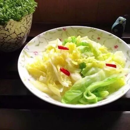 材料:圆白菜、洋葱、红椒、蒜、姜、醋适量;