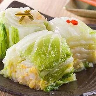 1、白菜洗净,放在盐巴水里浸泡,上面压上重量,约需压15小时