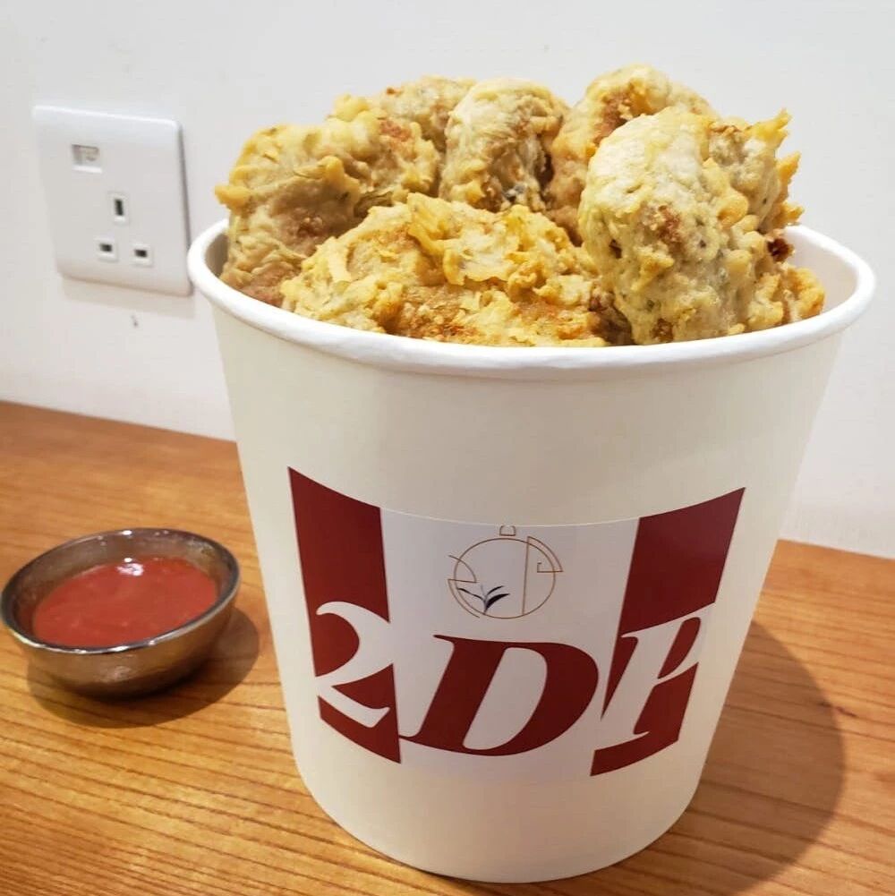 这家素食店用活性小麦粉、鹰嘴豆粉、豆腐等搓成素鸡粉团,炸出来酥酥脆脆,几可乱真。地址︰尖沙咀厚福街12号,蓝马商业大厦地下,2DP餐厅。营业时间:星期一至四、日:12:00~00:00;星期五至六:12:00~00:30。