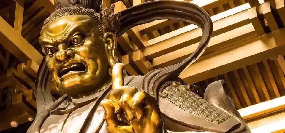 在寺院中常会听到一句谚语:“未供先尝三铁棒,私造饮食九铜锤。”若偷尝还没有供佛前之食物,要挨受三记铁棒;若私自烧煮食物,要罚打九次铜锤。掌管铁棒和铜锤的就是这位监斋菩萨。