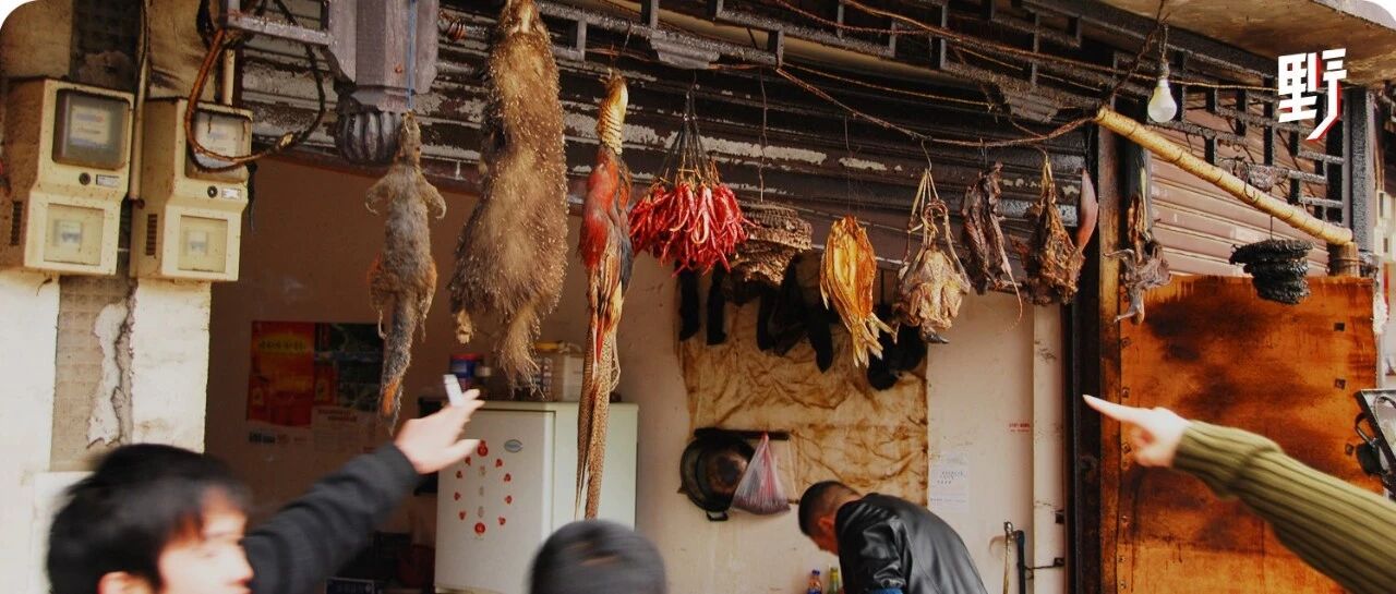 一家名为大众畜牧野味的商铺,廉价出售各种野生动物。
