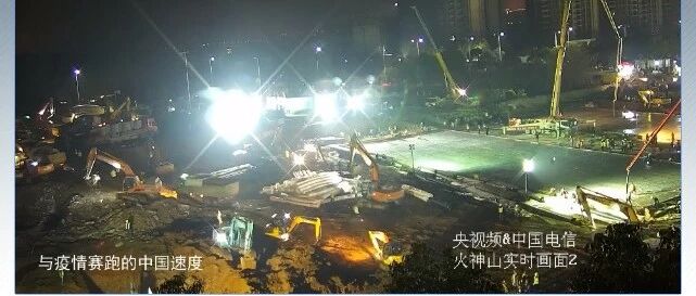 点开链接中的视频,就可以看到目前火神山医院的一线施工现场,尽管夜色已深,但是这里灯火通明,机械挖掘声不绝于耳,不少工人在空地上来来往往,辛勤工作。