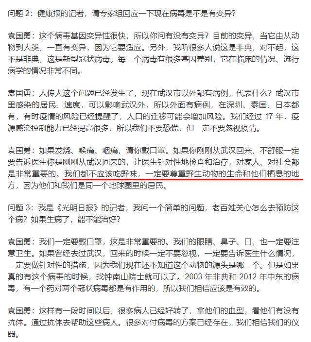 古人说,祸从口出,病从口入,新型冠状病毒基本上跟非典类似,属于野生动物传播可能性极大。