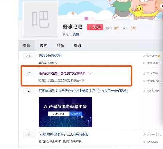 在一个名为“野味吧”的贴吧中,许多“野味交流群”在寻找群友,2019年10月正是内蒙古鼠疫闹得人心惶惶之时,但社群内还有人在急寻山老鼠吃。