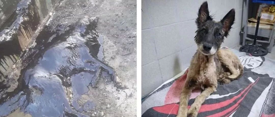 狗狗全身焦油黏在地上,他们花9小时,洗出来了一个惊喜...