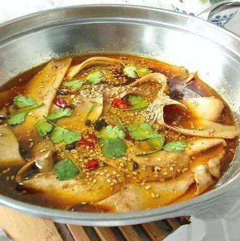 食用油:3汤匙;水淀粉:1汤匙;白糖:1茶匙;盐:6克;花椒几粒;花椒粉1茶匙;芝麻1茶匙;辣椒(红,尖,干)3段;香菜适量