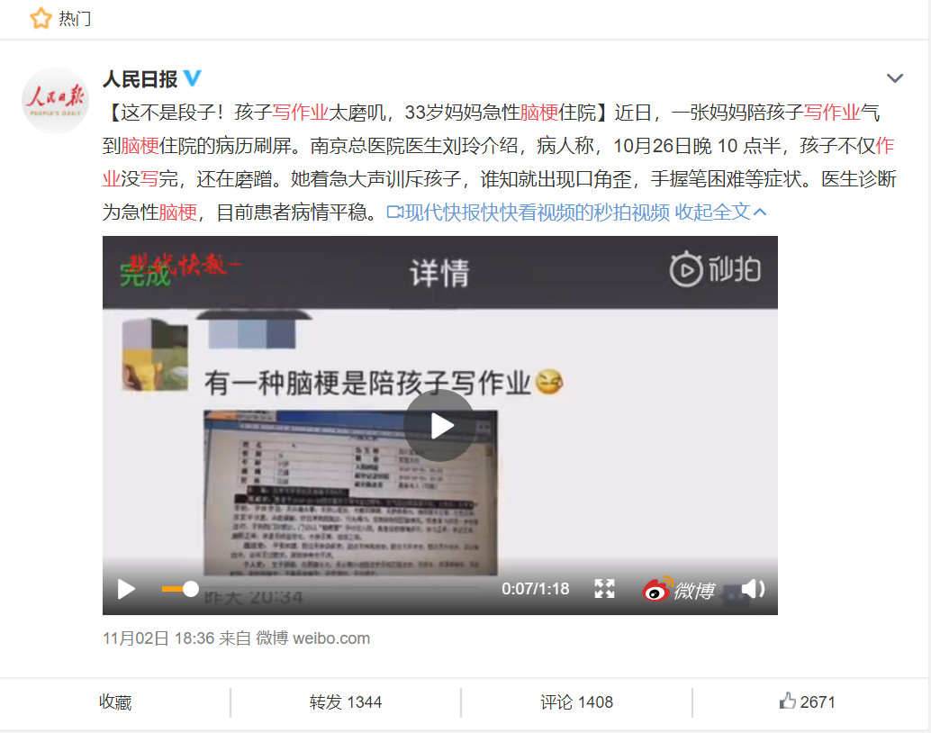 陪孩子写作业患脑梗