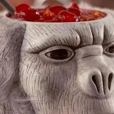 这里说的猴头不是食用菌猴头,是真正的猴脑。一个中间挖洞的桌子,一般二到四个人围桌而坐,中间的洞正好容一只青年猴子的头伸出。把猴子牵出,猴子的头顶从小洞中伸出,选好位置,用桌上的金属箍锁住,用快刀贴桌面划去,非常考验刀工,迅速撇去头盖骨。这时可以看到猴脑如嫩豆腐一般,接着倒入已经热好的滚油,撒上葱花。食客用汤匙在猴脑袋里直接搅拌,继续倒入滚油,期间猴子一直惨叫,接着趁热舀食。残忍指数超过南京大屠杀!!!