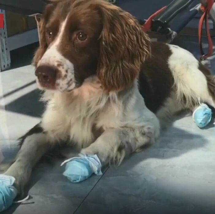 泉州酒店搜救犬贝贝四肢感染,磨烂了爪子……