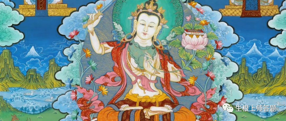 རང་ཉིད་ཤེས་རབ་སྨྲ་སེང་དཀར།།荣尼喜饶玛色嘎自性智慧白文殊ཐུགས་ཀར་ཧྲི་ཡིག་སྔགས་ཀྱིས་བསྐོར།། 吐噶舍益安吉郭心间舍字(ཧྲི)咒围绕འོད་ཟེར་གྲངས་མེད་འཕྲོས་པ་ཡིས།།俄赛仲麦楚巴印无数普照光明束མ་རིག་བློ་མུན་ཀུན་བསལ་ནས།།玛日罗牟古萨列熄灭一切无明暗ཤེས་རབ་ཡེ་ཤེས་རྒྱས་པར་བསམ།།喜饶益西杰巴唆止观增上智慧也。བསྙེན་པ། ཨོཾ་ཝ་ཀི་དྷི་ན་མཿ心咒:嗡,瓦格德纳嘛。