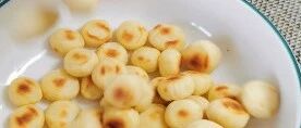 炒的时候小面块会慢慢鼓起来,再继续炒,炒至四周上色,有点硬度,这样,香香的小馒头就炒好了,刚出锅有点烫,要稍微凉一会再吃,外脆里软非常好吃。