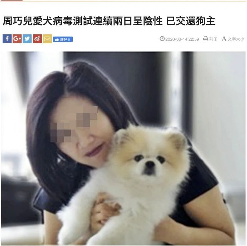 香港卫生署卫生防护中心通报指出,该宠物狗经过两轮测试结果均呈阴性,已交还主人。