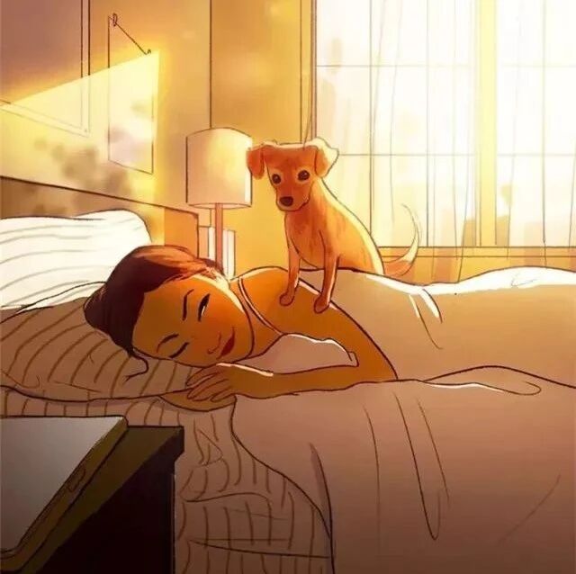 不得不说,这位插画师真的是很爱很爱狗,把和狗狗相处的一点一滴表现的这么温馨。 让每一个看到这些画面的狗主人都不自觉的想起自己家的狗,我想也只有真正爱狗的人,才能用心发现这些日常里的小感动。 当你一个人在外,远离亲朋好友,远离家人,那就一定要在身边养一条狗,它可以像父母、像朋友、像爱人一样陪在你身边。