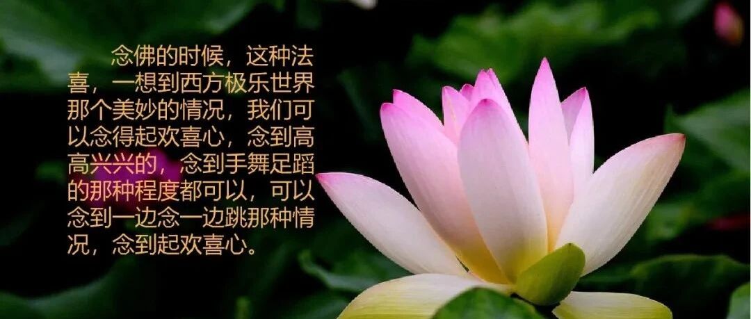 念佛的时候,这种法喜,一想到西方极乐世界那个美妙的情况,我们可以念得起欢喜心,念到高高兴兴的,念到手舞足蹈的那种程度都可以,可以念到一边念一边跳那种情况,念到起欢喜心。