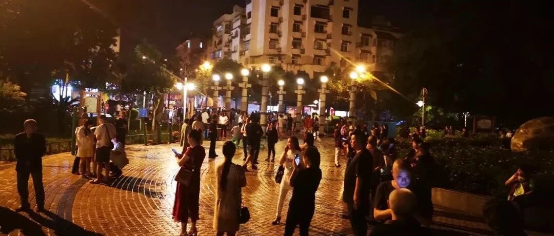 6月17日,在长宁县城,震后人们来到安全地带。新华社发(王旭 摄)