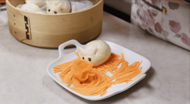7、兔子眼睛用红豆竖着放进去