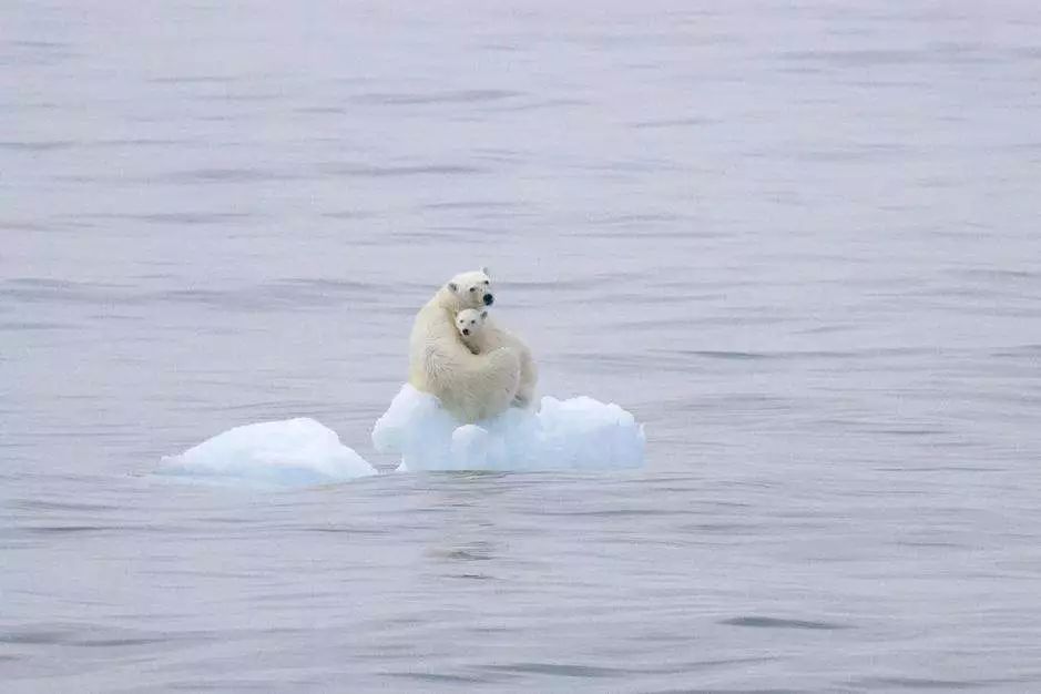 一对北极熊母子,在目之所及仅存的浮冰上紧紧依偎。曾经赖以生存的家园被海水一点点蚕食,眼睛中透着绝望。