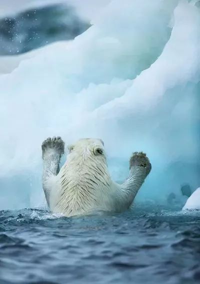 一只北极熊,在连续232个小时(9天)后,终于在687公里之外,找到了一块能承受它重量的浮冰,它紧紧地抓住浮冰,试图爬上去。 它实在太累了。