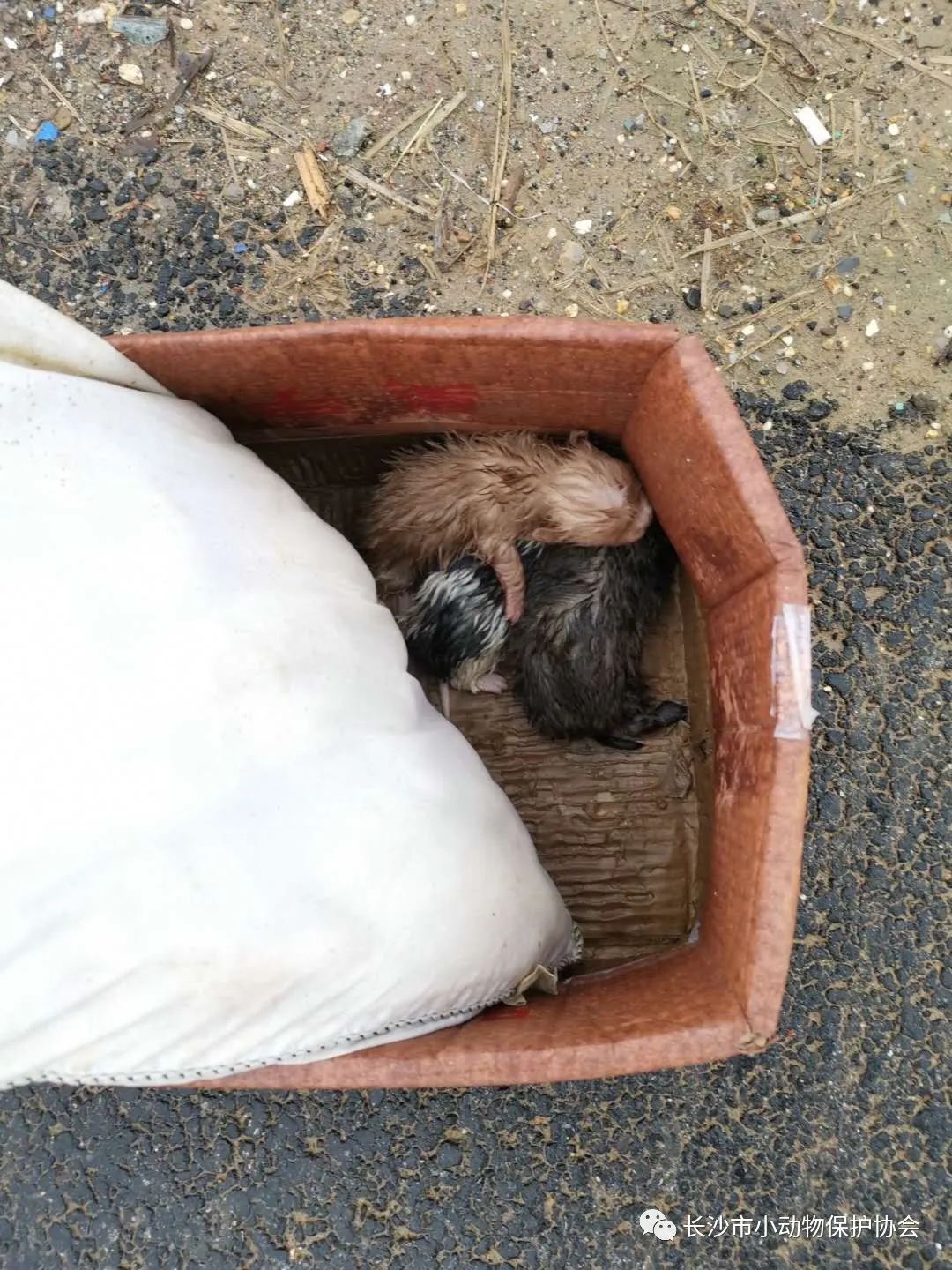 前天,管理员收到一条这样的求助,在路边发现三只特别小的幼犬,眼睛都还没有睁眼,非常虚弱,因为下雨全身湿漉漉的,在虚弱的呼叫着