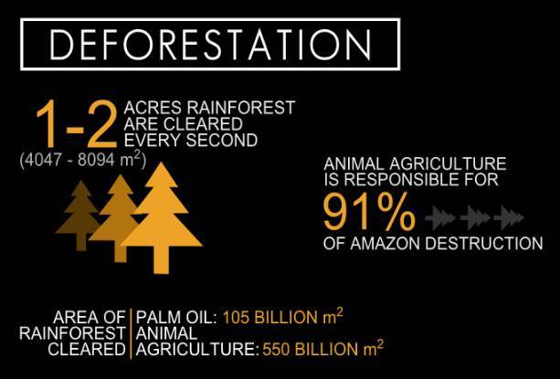 原本大量储存二氧化碳的雨林,也变成制造肉品的饲料基地,亚马逊雨林遭滥垦的九十五%耕地,都用来种大豆,制成畜牧用的饲料。