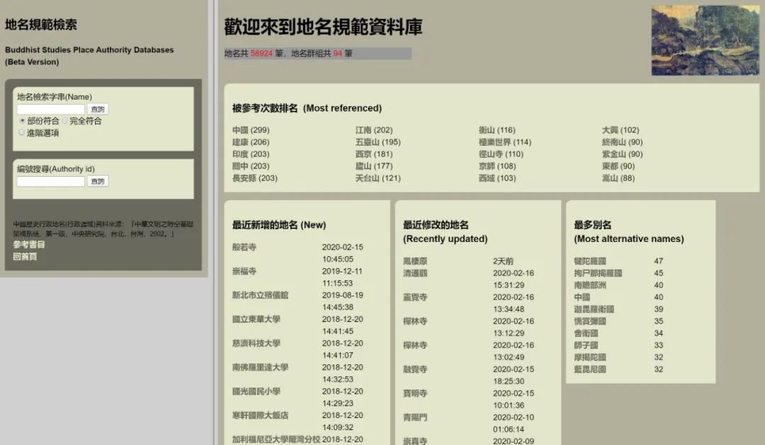 提供佛典相关地名规範资料查询。