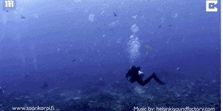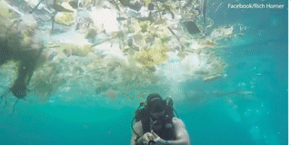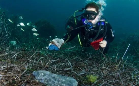 潜水时也常常看到海鱼被塑料垃圾缠身。