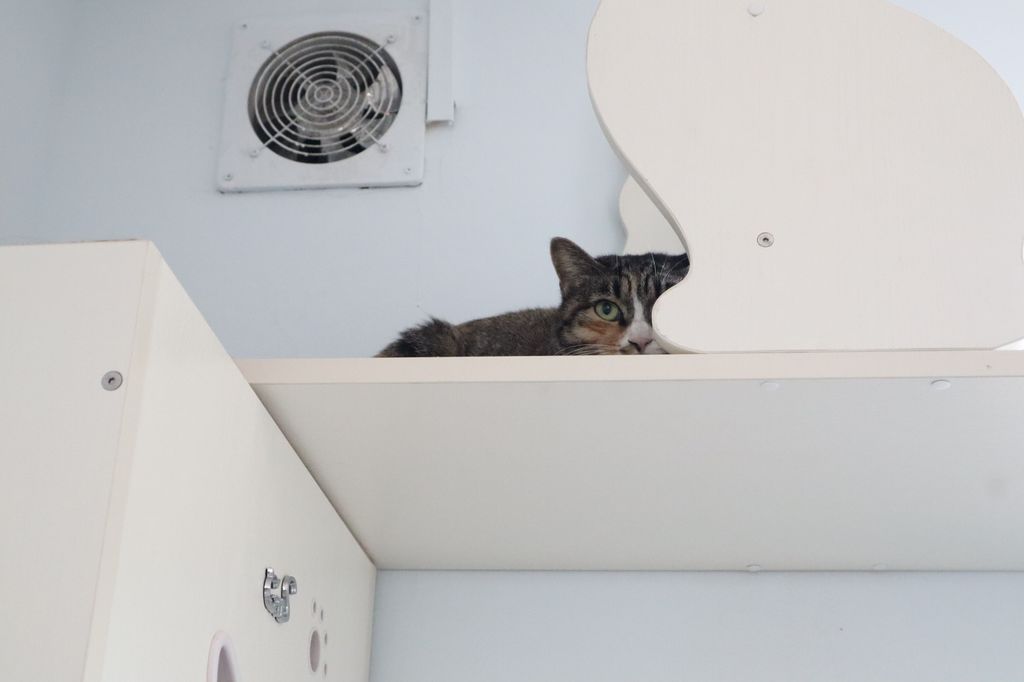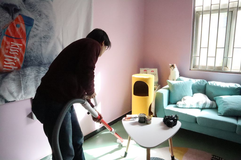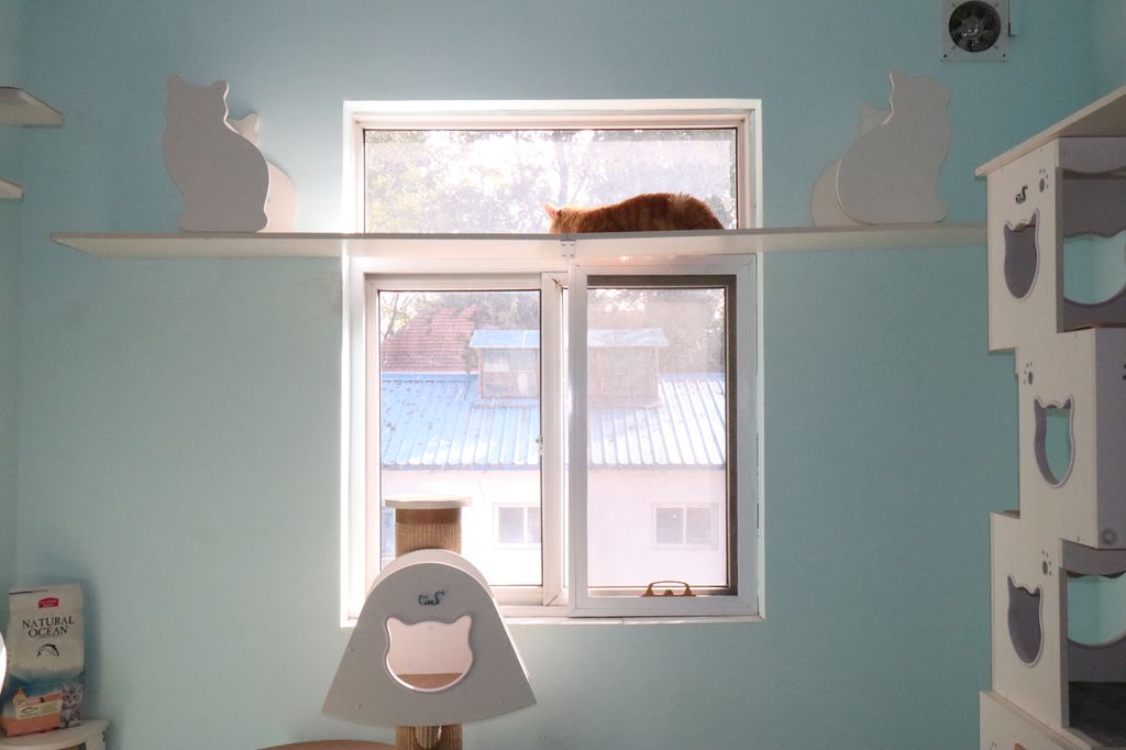猫楼的“住户们”住在模仿人类生活环境的客厅、卧室里,