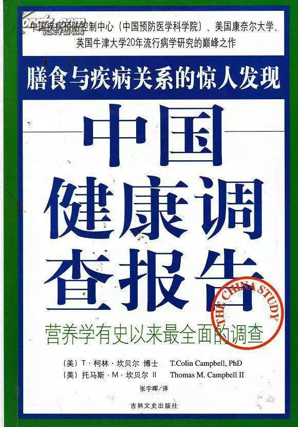 我开始和母亲探讨这方面的知识,谈论最多的是美国柯林.坎贝尔博士所着的《中国健康调查报告》(又名《救命饮食》)。