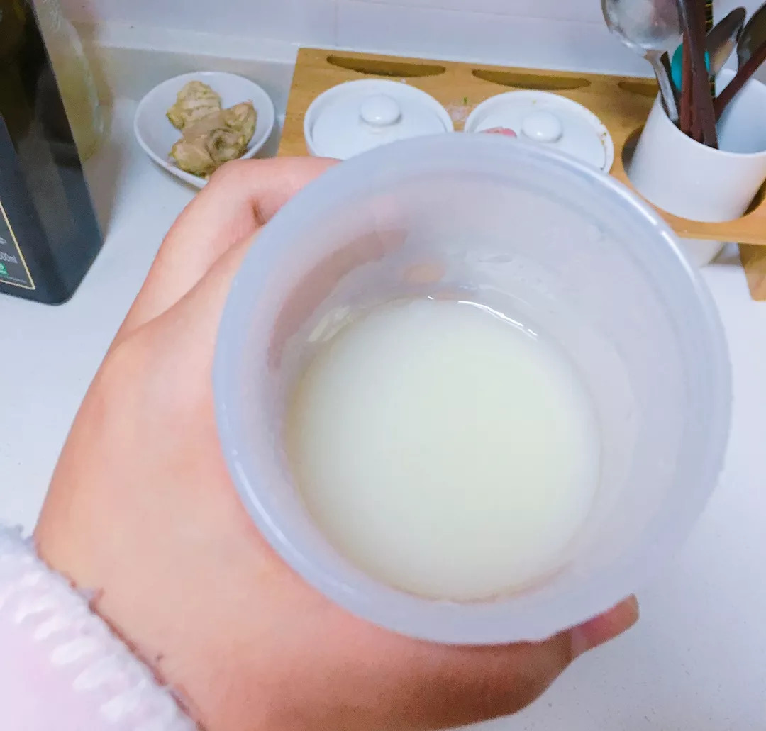 (早上舀出的米油放冰箱,需用时拿出来,和食材一起蒸热)。