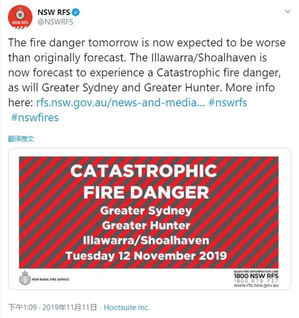 尽管从上周五到现在已经过去了三四天,但大火完全没有变小的迹象,甚至在今天,新州山火被重新定义为