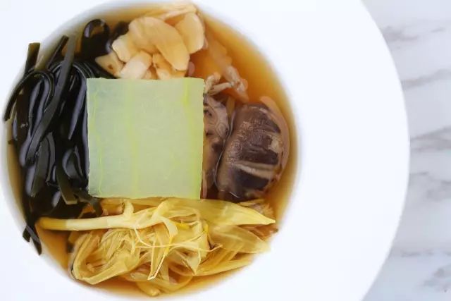 1. 干花菇、干黄花菜、海带、百合泡发。