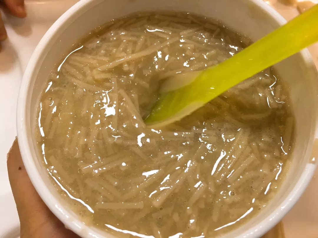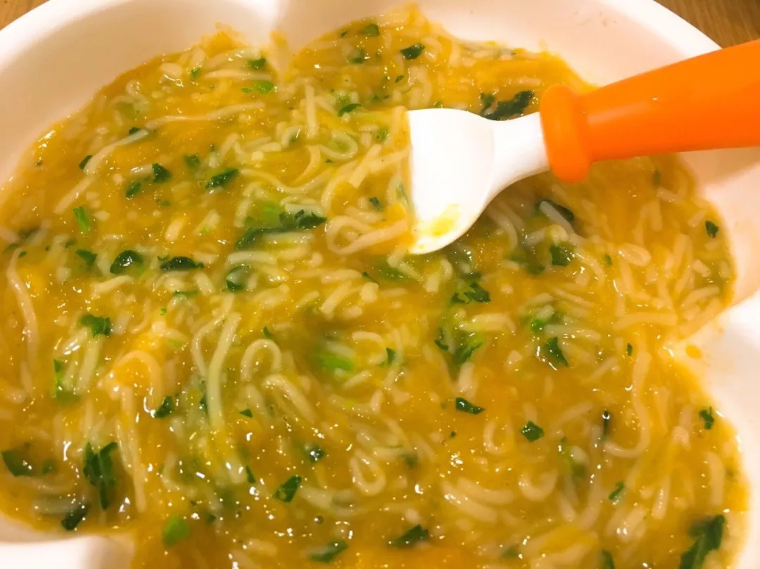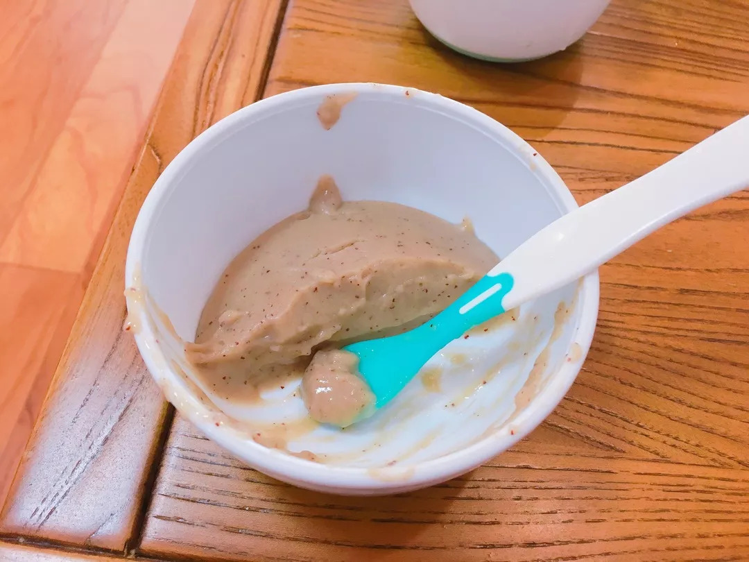 8-10月龄,辅食性状为逐渐变稠的米糊、食物泥、碎碎面条。