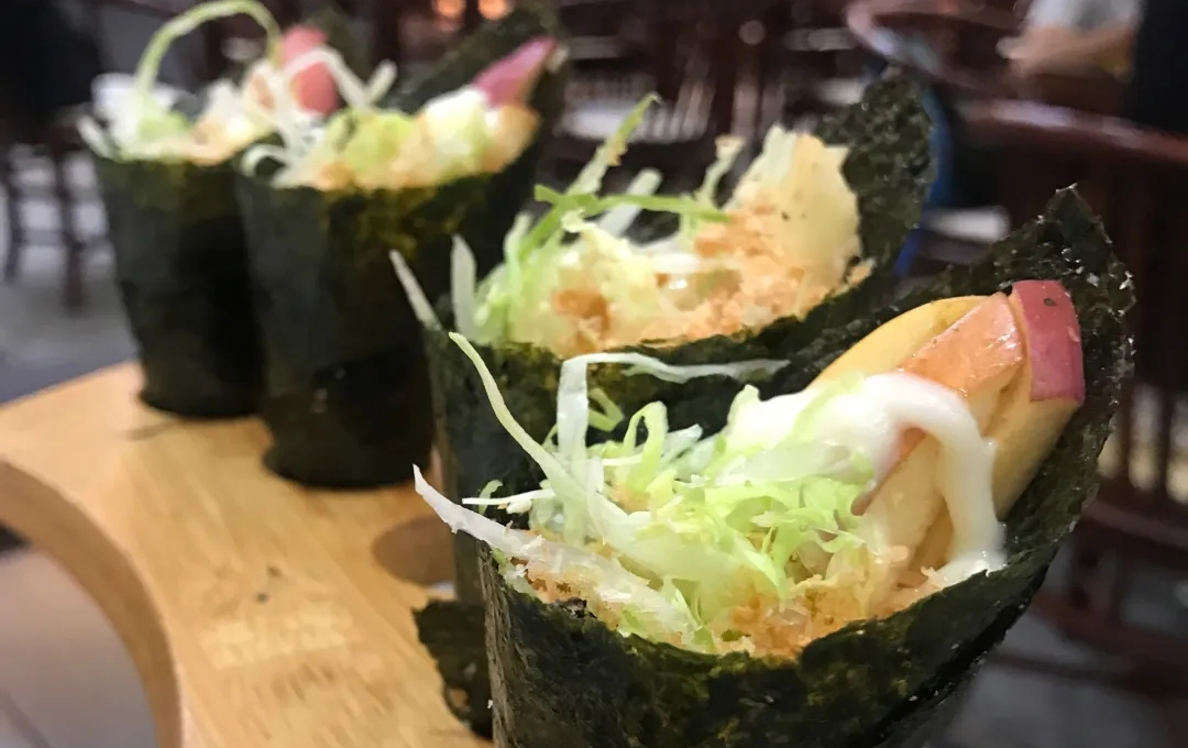 开吃前先来壶松茸汤来热身暖胃,松茸汤几乎是来客必拿的茶(汤)品,茶壶特别精致,松茸味道鲜甜,茶味浓郁,营养好喝;胡麻豆腐需要跟工作人员下单,这道菜不仅卖相吸引,而且养生健康、嫩滑美味,大家都非常喜欢吃。同时可以把紫菜牛油果手卷单也下了,手卷层次丰富,又香又脆,必须趁热新鲜吃哦,不然紫菜软了就不好吃了。好吃的太多,小编就不一一点评……最后记得来个甜点板栗蛋糕,也是必吃的哦。